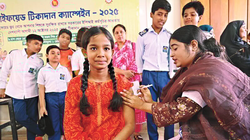 ঢাকা উত্তর সিটি করপোরেশন (ডিএনসিসি) জানিয়েছে, তাদের আওতাধীন এলাকায় প্রতিদিন গড়ে ৭২ হাজার শিশু টাইফয়েডের টিকা পাচ্ছে। গতকাল মোহাম্মদপুরের ঢাকা রেসিডেনসিয়াল মডেল কলেজে কার্যক্রমের উদ্বোধন করেন প্রাথমিক ও গণশিক্ষা মন্ত্রণালয়ের উপদেষ্টা অধ্যাপক ডা. বিধান রঞ্জন রায় পোদ্দার।